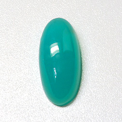This month we bring you a sampling from our inventory of chrysocolla, consisting of both cabochon-cut and uniquely carved pieces. The 63.99-ct piece pictured above is from material found in the 1950s and cut by Bud Standley. It features an attractive agatized pastel blue band and a small druzy window.