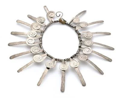 Sotheby's Hong Kong's January 20 sale, Boundless: Contemporary Art, offered paintings and sculpture, but also graffiti pieces as well as artist-designed carpets and jewelry. Sixteen items of jewelry were offered, by artists such as Pablo Picasso, Alexander Calder (see necklace pictured here), Louise Nevelson, Anish Kapoor, and Max Ernst. There was even Petite Venus Bleue by Yves Klein, whom we touched on last June. Most of the jewelry did not sell, perhaps because it was crowded out by so much collectible American and Asian art.