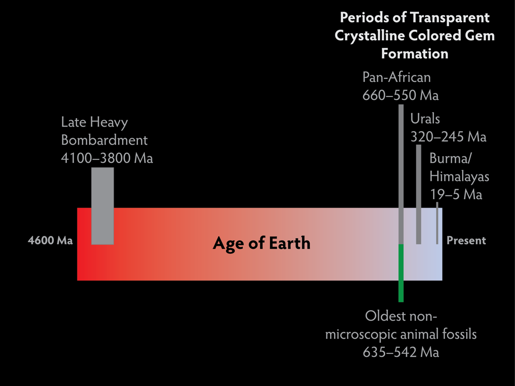 Gemologist and author Richard W. Hughes has touched on the subject of colored gemstone formation by time-period and geographic location for the last couple of years, beginning with the February 2014 AGTA GemFair, and as recently as earlier this month at the AGA Cutting Edge Gemological Conference in Tucson. At the 2015 Hong Kong Show last fall, Dr. Daniel Nyfeler, Managing Director of Gübelin Gem Lab, devoted an entire talk on the topic, titled "The Age of Gemstones."