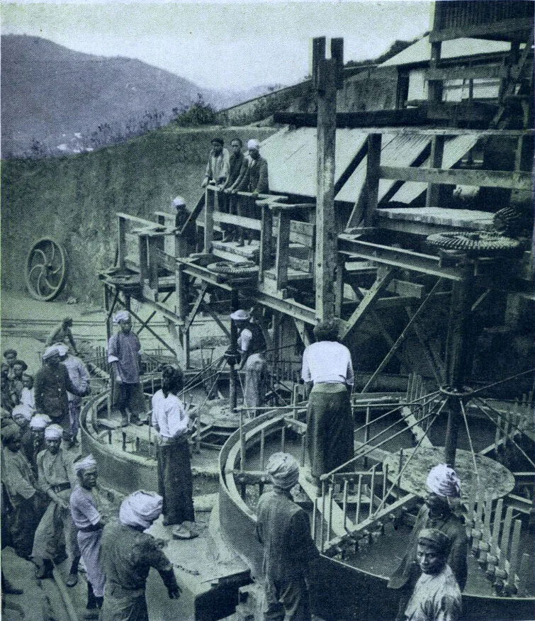 European washing mill. These mills cast away all large stones and rubbish and collect the fine sand from which rubies are obtained.