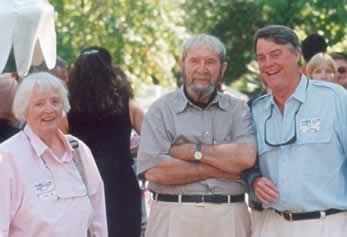 | Marge and John Sinkankas, together with William Larson at John’s 85th birthday celebration. Photo courtesy of Robert Weldon. |