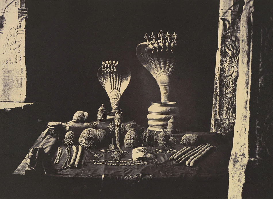 Linnaeus Tripe. Madura, India: The Great Pagoda Jewels, January–February 1858. These jewels would have been used to adorn statuary on festive occasions. Click image to enlarge. (Collection of Metropolitan Museum of Art, courtesy Victoria & Albert Museum)